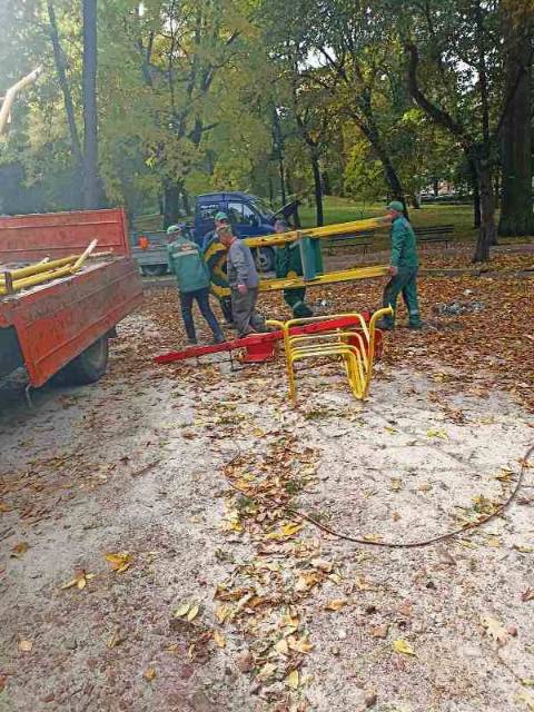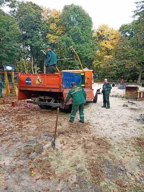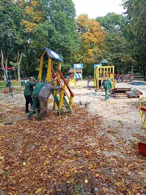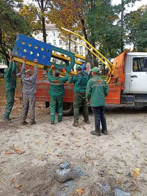 У парку Франка розпочали демонтаж дитячого майданчика, на місці якого встановлять ігрову зону "Лис Микита".