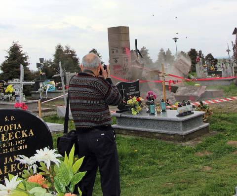 Зокрема, 26 квітня у селі Грушовичі поблизу Перемишля польські активісти демонтували з братської могили українських вояків УПА державний герб України та сплюндрували могилу.
