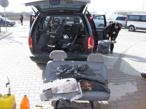 Щоб непомітно провезти бурштин, українці заховали увесь товар у порожнини автомобіля, а саме: під обшивку дверей.