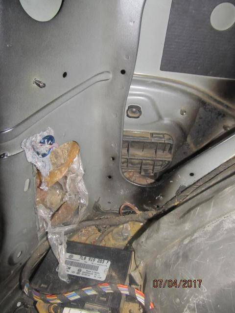 Зокрема, водій перевозив необроблене жовто-коричневе каміння, яке він заховав у отворі для магнітоли, у обшивці заднього лівого крила бамперу.