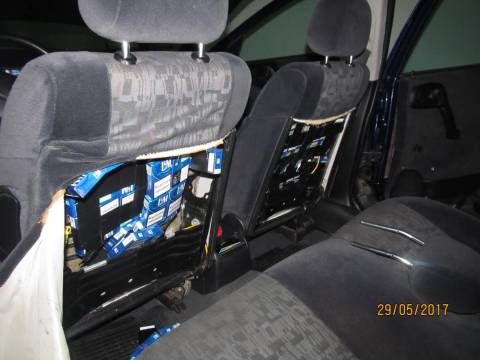 Цигарки намагався вивезти до Польщі українець. Увесь товар він заходав у порожнині передньої панелі приладів, в передніх та задніх сидіннях, за декоративною обшивкою підлоги багажного відділення, в порожнинах задніх крил свого авто.