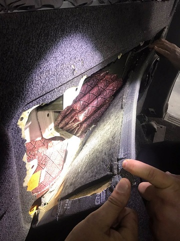 У ході поглибленого огляду виявили планшетні комп’ютери виробництва Hewlett-Packard різних моделей та кольору в кількості 110 штук. Даний товар приховали під декоративною обшивкою стінок салону.