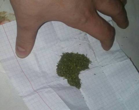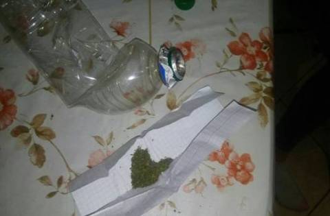 Під час огляду помешкання, поліцейські виявили на столі в кімнаті саморобний пристрій для вживання наркотичних засобів, а також пакет з речовиною рослинного походження, схожою на марихуану.