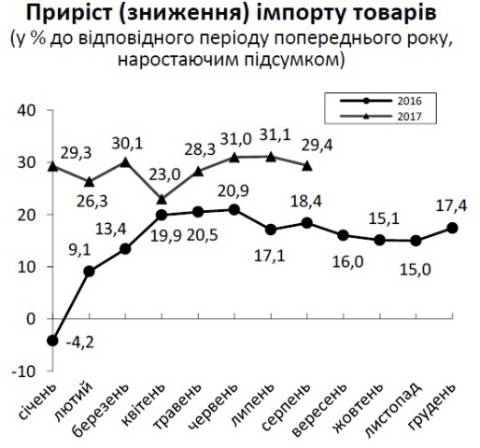У січні-серпні цього року, порівняно з цими місяцями минулого року, експорт зріс на 22,6% або на 180,2 млн дол, імпорт – на 29,4% або на 309,1 млн дол.