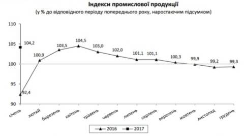 У січні, порівняно з січнем 2016 року, виробництво промислової продукції у області зросло на 4,2%.