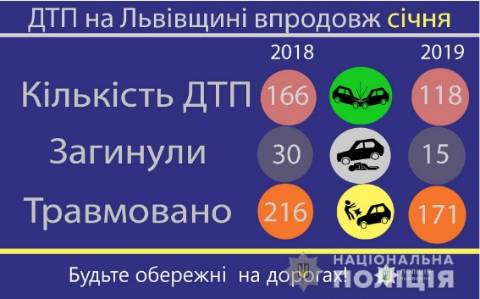 Окрім цього кількість аварій в порівнянні з січнем 2018 року скоротилась на 48.