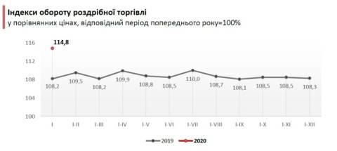 У січні, порівняно з цим місяцем 2019 року, оборот роздрібної торгівлі зменшився на 20,1%.