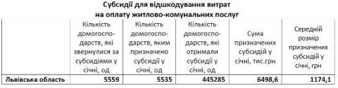 Станом на 1 лютого субсидії на оплату житлово-комунальних послуг отримали 445,3 тисяч домогосподарств.