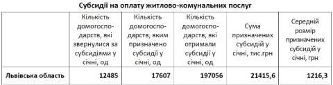 У січні субсидії на оплату житлово-комунальних послуг отримали 197,1 тисяч домогосподарств.