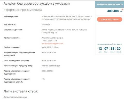 Аукціон стартує 7 серпня, а початкова вартість приміщення становить 400 488 грн.