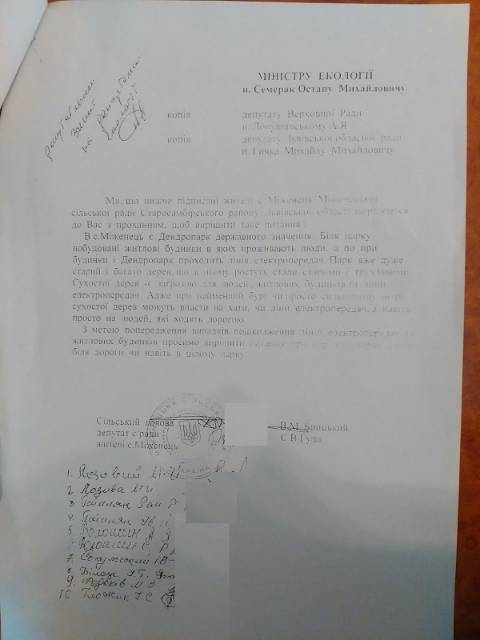 "Парк вже дуже старий, і багато дерев, що у ньому ростуть, стали старими і трухлявими. Сухостої дерев стали загрозою для людей, житлових будинків та ліній електрпередач. Адже при найменшій бурі, сильному вітрі, сухостої дерев можуть впасти на житлові будинки, лінії електропередач а навіть просто на людей, які ходять дорогою," – йдется у листі.