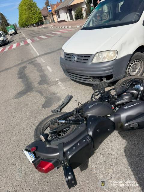 Вчора, 27 квітня, близько 15:45 год на перехресті вулиць Львівської та Зваричі у Стрию зіткнулись авто Volkswagen Caddy, яким керував 56-річний місцевий мешканець, та мотоцикл Rider Renegade 250 під керуванням 19-річного мешканця Стрийського району.