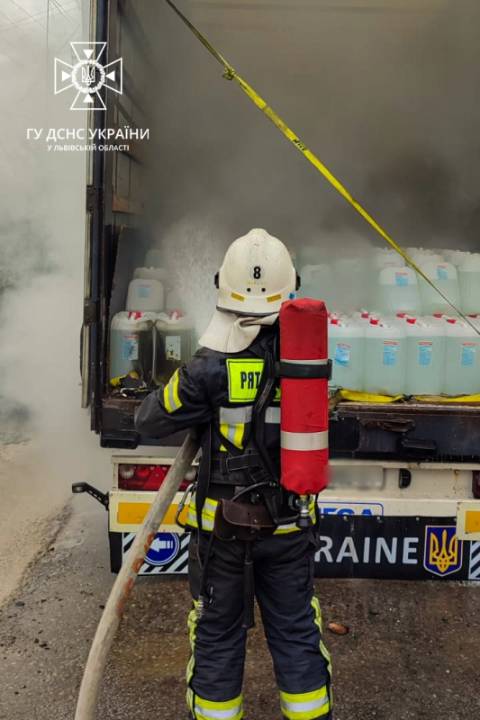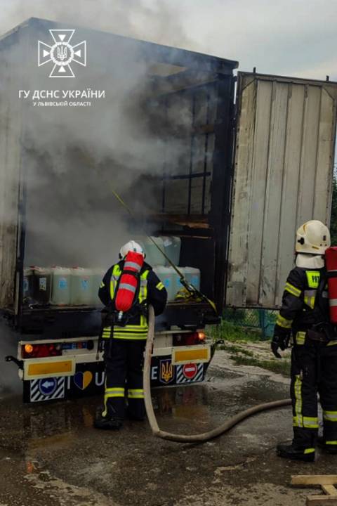 На вул. Морозенка у Стрию виникла пожежа в причіпі авто Renault Premium, яке перевозило каністри з пероксидом водню.