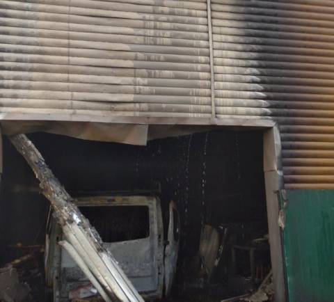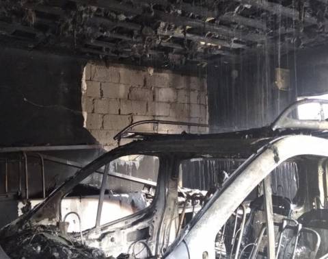 На вул. О. Олеся, 5 виникла пожежа в гаражі, згоріли авто Opel Vivaro та ЛуАЗ.
