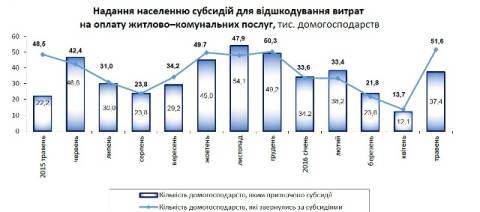 У травні субсидії отримали 291,2 тис сімей, що у 7,3 раза більше, порівняно з травнем 2015 року.