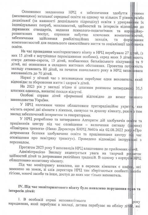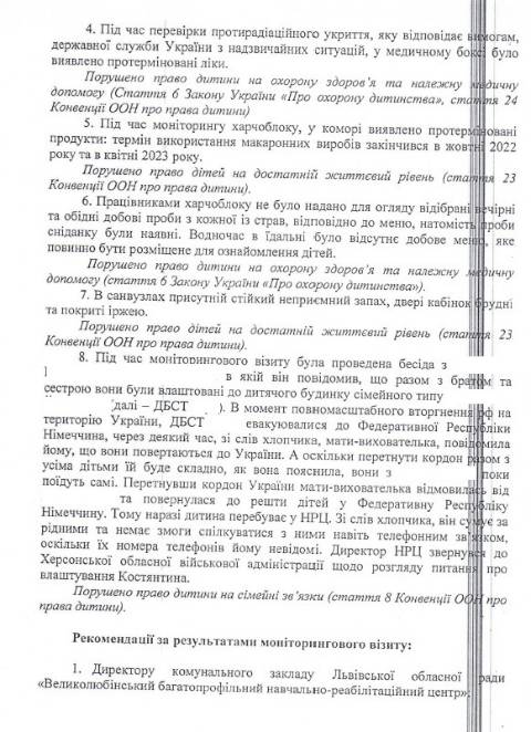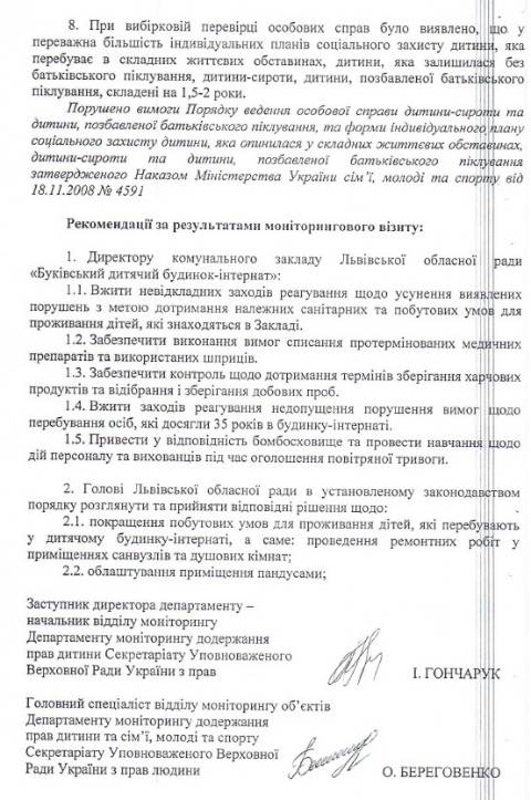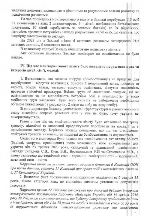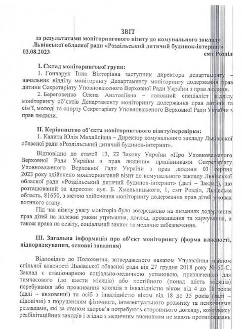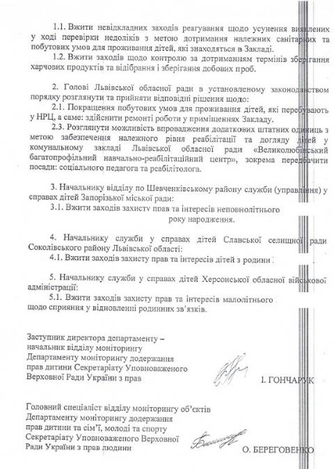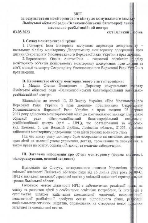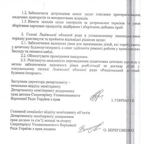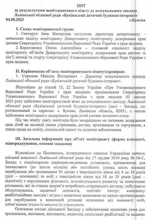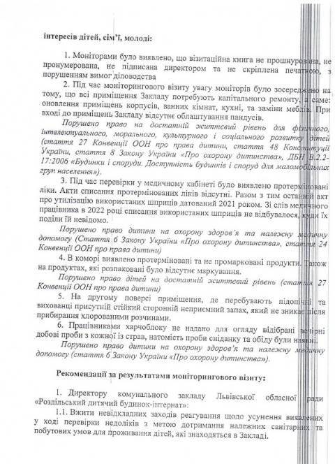 Львівської обласної ради – Великолюбінського багатопрофільного навчально-реабілітаційного центру, Роздільського дитячого будинку-інтернату та Буківського дитячого будинку-інтернату й зафіксували порушення прав та інтересів дітей.
