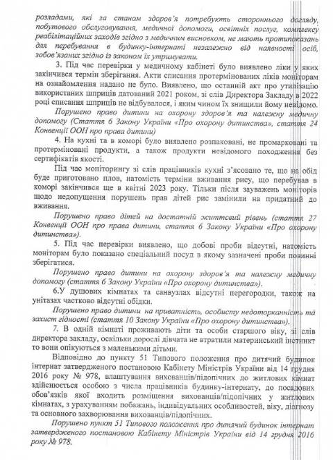 Натомість у Буківському дитячому будинку-інтернаті виявили такі порушення: