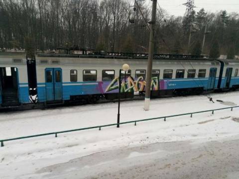 Сьогодні вночі на станції Трускавець невідомі розмалювали аерозольними фарбами вагони електропоїзда №6015 сполученням Львів – Трускавець.