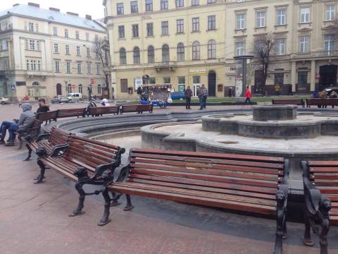 Лавки, які раніше стояли вздовж алеї, тепер перемістили навколо фонтану, що перед Оперним театром.