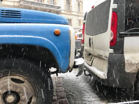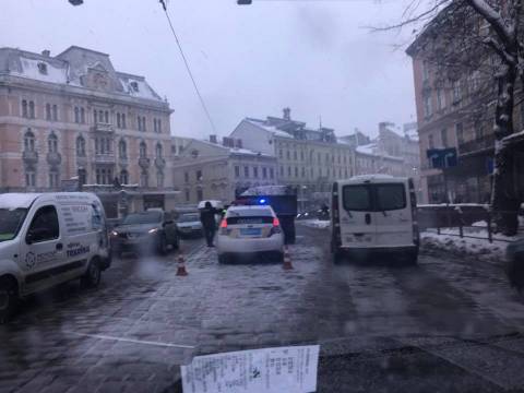 Сьогодні, близько 14:40 год., на проспекті Свободи мікроавтобус Renault Trafic врізався у вантажівку, наповнену снігом.