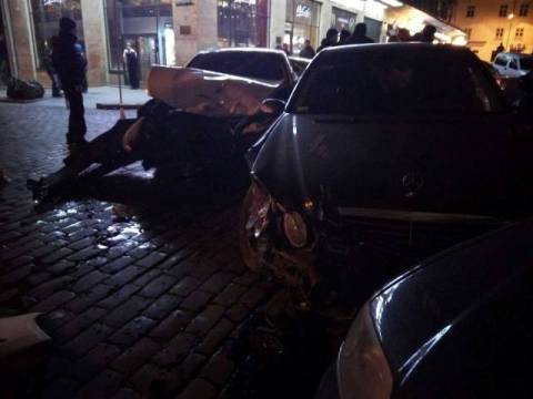 Сьогодні вночі, 27 листопада, на проспекті Шевченка у Львові Mercedes E-класу, який їхав на великій швидкості, врізався у авто Hyundai Sonata. У результаті аварії постраждала ще припаркована неподалік іномарка Audi.