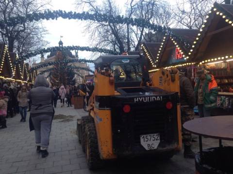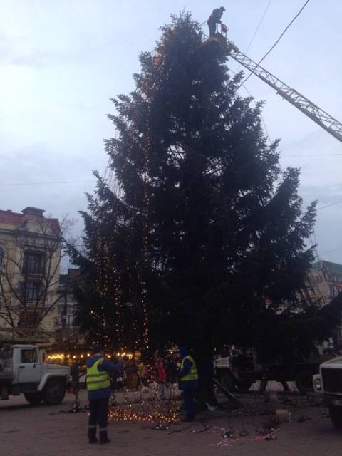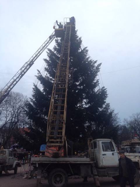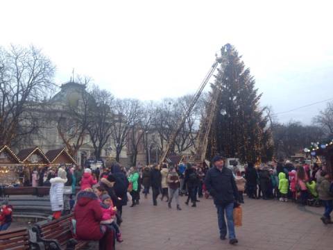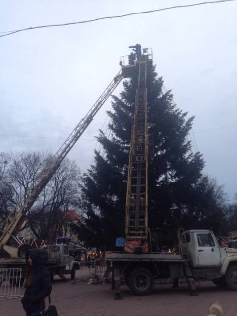 Сьогодні, близько 15:30 год., на площі перед Оперним театром у Львові почали встановлювати ілюмінацію на головну ялинку Львова.