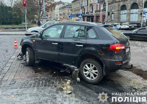 Він втратив керування, після чого автомобіль виїхав на велодоріжку й тротуар, зніс електроопору та дорожній знак.