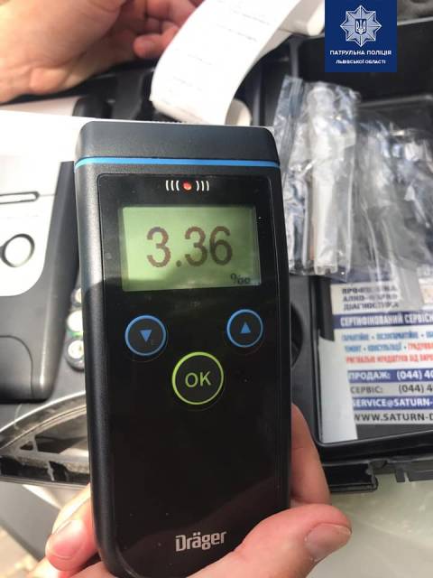 Підозри виникли і у іншого водія, а драгер їх підтвердив. Результат - 3,36 проміле. Тож, окрім протоколу за скоєну ДТП, чоловік отримав протокол за керування в нетверезому стані.