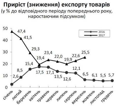 У січні-вересні цього року, порівняно з цими місяцями минулого року, експорт зріс на 25,5% або на 232 млн дол, імпорт – на 29,4% або на 355,6 млн дол.