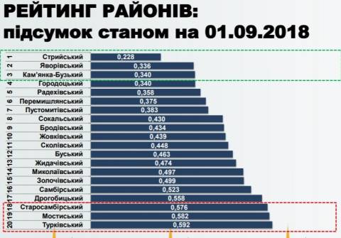 На перших місцях у рейтингу – Стрийський, Яворівський та Кам’янка-Бузький райони.