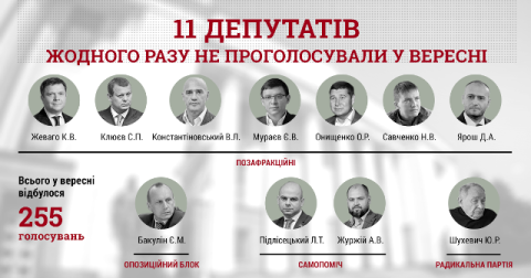 Окрім нього, у вересні жодного разу не проголосували ще 10 народних депутатів.