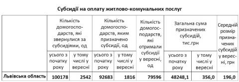 У вересні субсидії на оплату житлово-комунальних послуг отримали 79,6 тисяч домогосподарств.