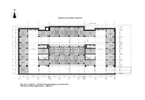 У підземному паркінгу передбачено 65 місць для авто та 4 місця для мототранспорту.