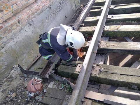 Рятувальники за допомогою бензорізу розрізали металеву решітку бункеру та витягнули жінку, її госпіталізували до лікарні.