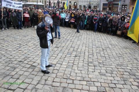 Одногодинний попереджувальний страйк львів'ян на Площі Ринок організований Комітетом Майдану Львівщини.