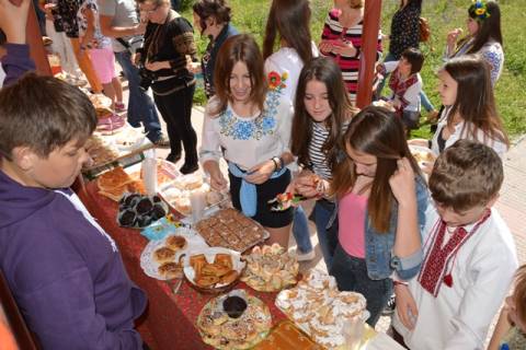 Ой леле! Тут дійсно було від чого задурманіти. Наважуся перелічити бодай деякі зі смаколиків: торти, пляцки, пампушки, кошички, трубочки, рулети, хрусти, пирожні, чебуреки, біляші, вареники з вишнями, канапки, домашня піца, фруктові шашлики і т.п. Хоча це далеко не повний перелік усіх присмаків.