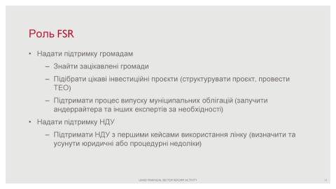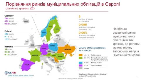 Ще один міжнародний партнер Укрексімбанку USAID представив новий фінансовий механізм для залучення міжнародних коштів в розвиток муніципалітетів – міжнародні муніципальні облігації. Керівник групи "Фінансова інфраструктура" Проєкту USAID "Реформування фінансового сектора" Павло Костромицький розповів, що цей механізм впроваджується за участі польських партнерів. Зараз завершуються підготовчі роботи щодо його старту в Україні.
