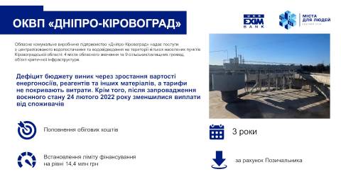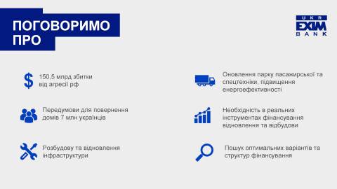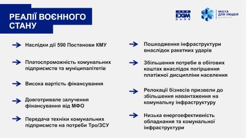 Укрексімбанк з міжнародними партнерами активно працює над розвитком інструментів кредитування громад в умовах війни та у період відбудови, пропонуючи комплексний підхід до розв'язання цього питання.