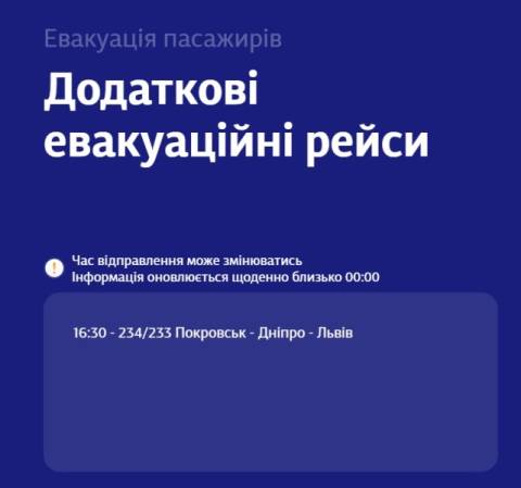 Зокрема, поїзд 234/233 за маршрутом Покровськ – Дніпро – Львів вирушить о 16:30 год.