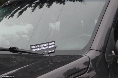 Бійці львівського батальйону "УНСО" поряд з одним з центральних відділень ВіEcБанку, що на вул. Грабовського, поширили листівки, в яких вимагається "відставки сепарів – найманців путінського режиму".