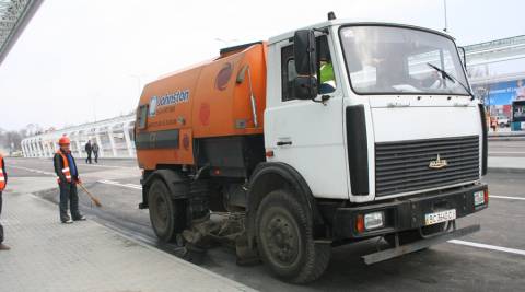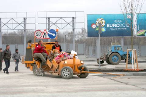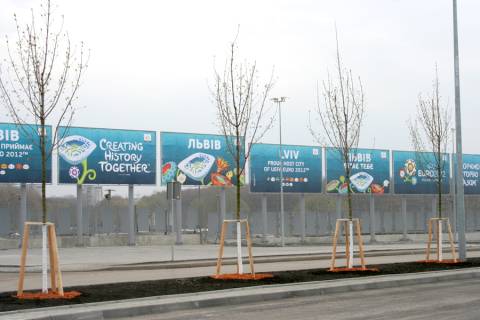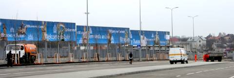 «Посилено працюють двірники та прибиральні машини, закінчують поклейку біл-борду «Вітаємо у Львові» , - передає кореспондент "Варіантів".