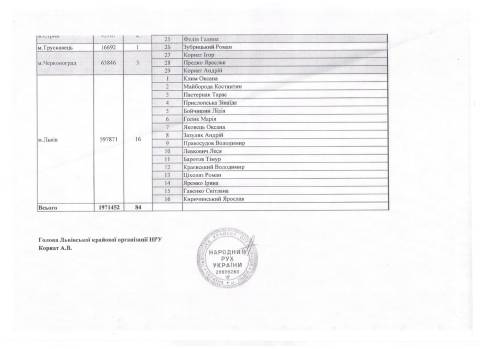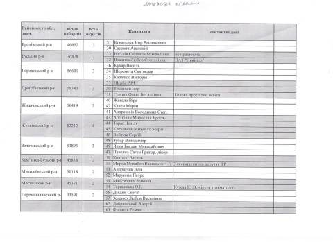 В розпорядження Варіантів потрапили відскановані версії списків кандидатів Народного руху до Львівської міської та обласної рад, затверджених рішеннями міської і обласної конференцій, а також Політрадою партії.