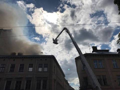 На місце події прибули 10 одиниць пожежно-рятувальної техніки та 45 рятувальників. Займання виявили на 2-му, 3-му поверсі та горищі будівлі.