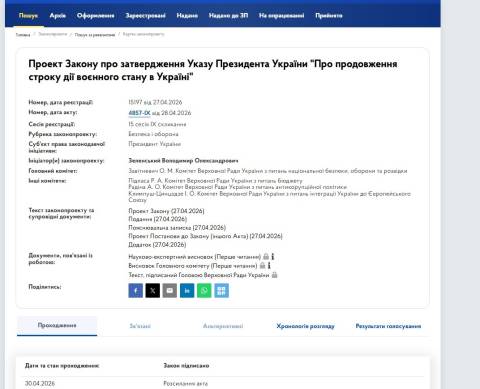 Нагадаємо, 24 лютого 2022 року Росія розпочала повномасштабну війну проти України, тоді ж в Україні ввели воєнний стан, який продовжили до 4 травня 2026 року.