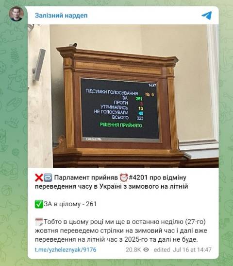 Сьогодні, 16 липня, Верховна Рада України прийняла законопроєкт 4201, який передбачає скасування в Україні переходу з зимового на літній час і навпаки.