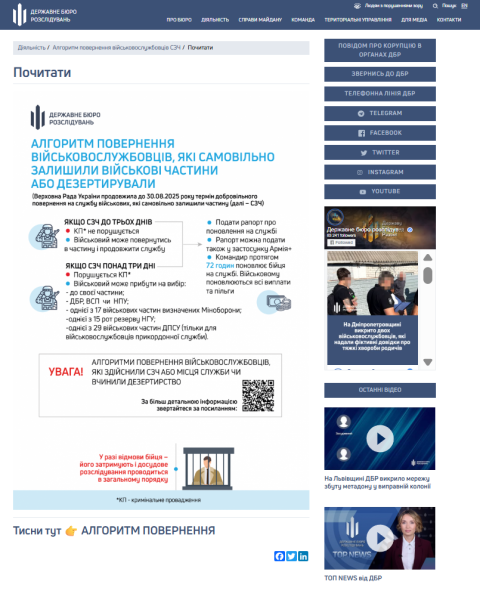 З алгоритмом повернення військовослужбовців, які самовільно залишили військову частину чи місце служби або вчинили дезертирство можна ознайомитись тут.