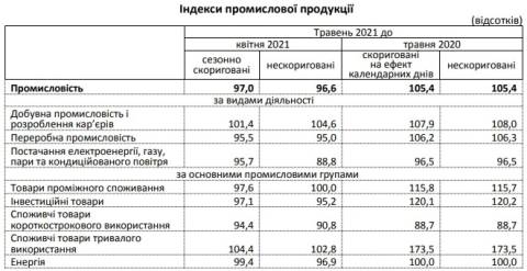 А за січень-травень 2021 року зростання становило 2,2%, натомість у минулому році за цей період зафіксували падіння обсягів промвиробництва на 8,1%.