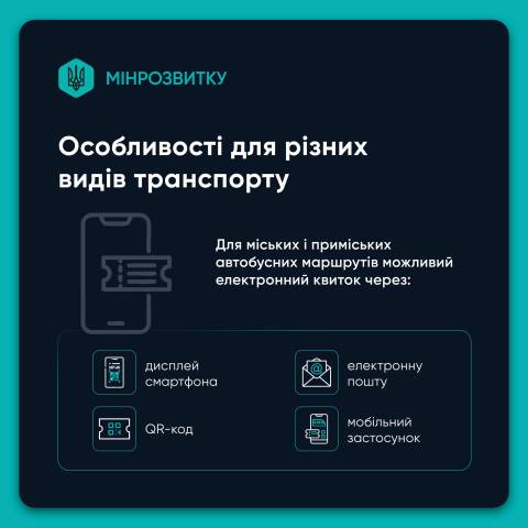 Відтепер електронний квиток оформлюється як повноцінний цифровий документ з усіма обов’язковими реквізитами, так само як і паперовий квиток. Після оплати пасажир може отримати підтвердження поїздки у зручний спосіб: на екрані смартфона, у вигляді QR-коду, через електронну пошту або мобільний застосунок, а також в особистому електронному кабінеті" – наголосили у міністерстві.
