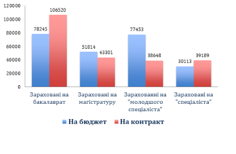 Серед зарахованих на бакалаврат кількість контрактників на 28 тис 275 осіб перевищує кількість бюджетників.