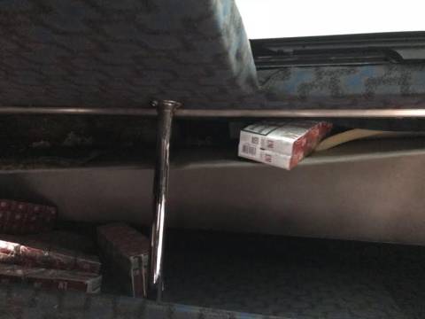 Прикордонники знайшли приховані цигарки під декоративною обшивкою бокових стінок та стелі авто.